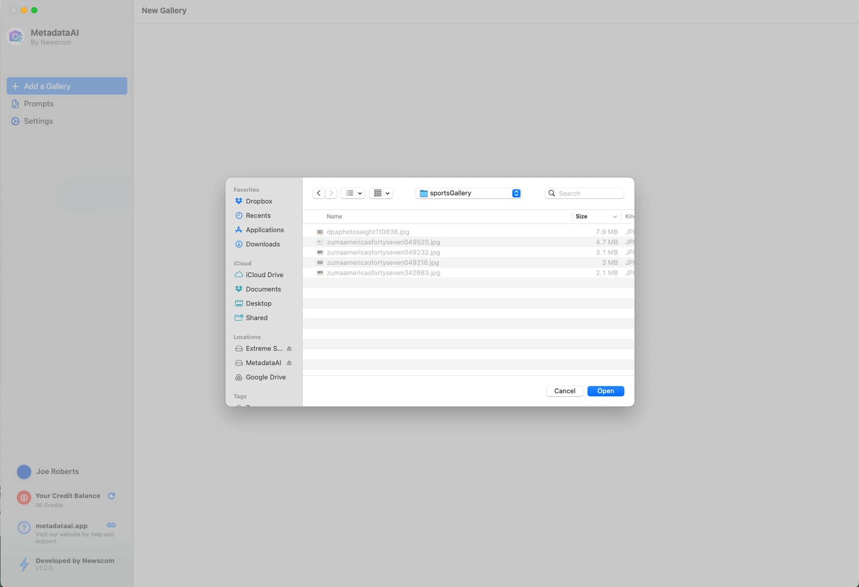 Click Open to add the folder as a gallery and to give MetadataAI access to it for monitoring and image processing.
