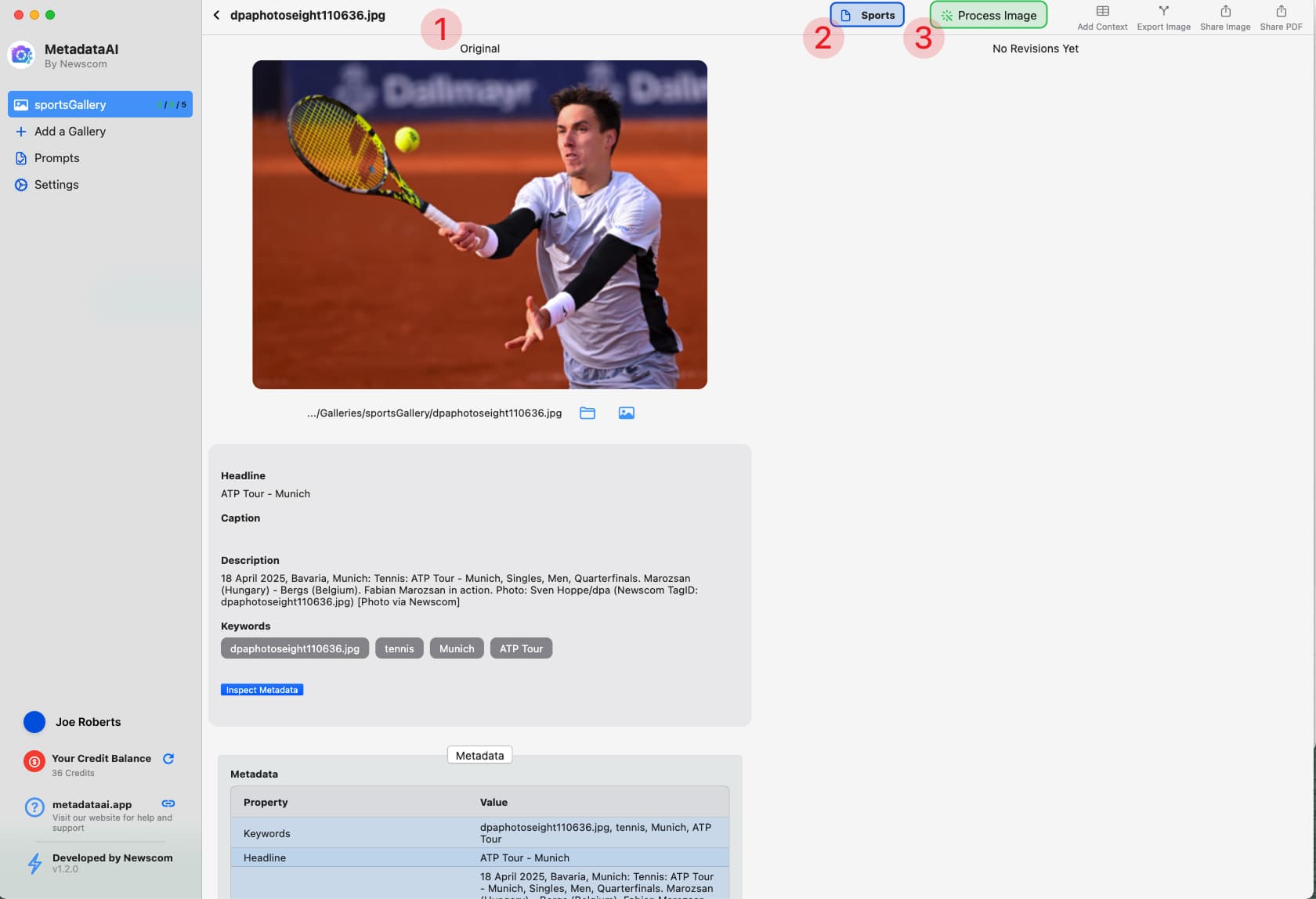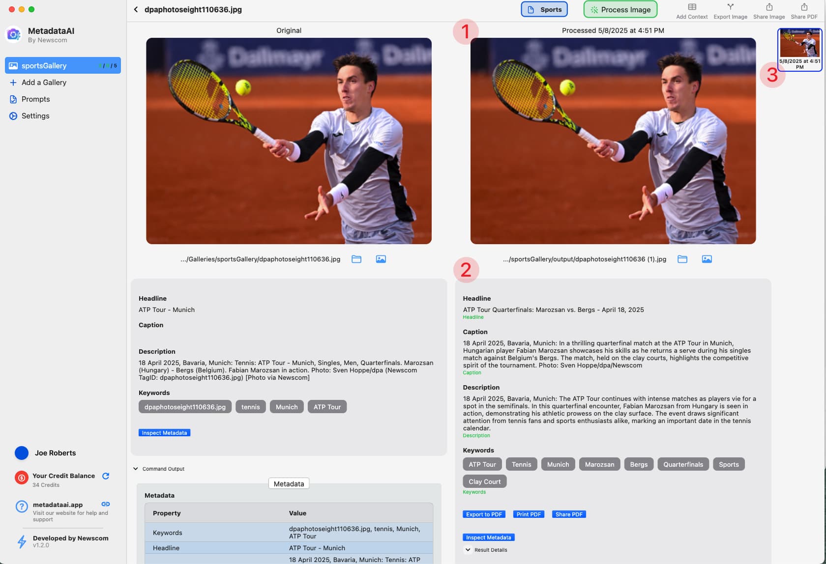 - 點擊「處理影像」按鈕以使用「運動」提示為此影像生成新的中繼資料。